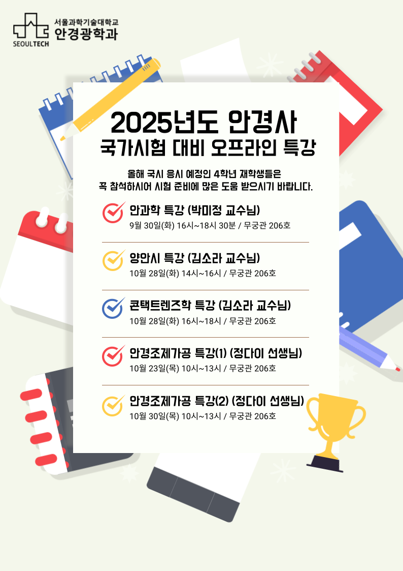 제목 | 안경사 국가시험 오프라인 특강 안내 | ||||